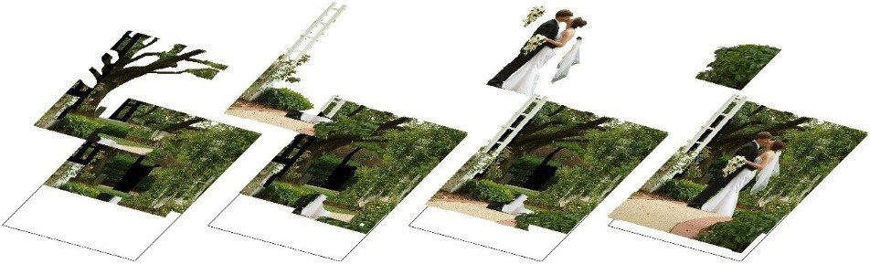 However, "PaperTole by KC" uses true photographic images on photo paper, with backgrounds extended behind foreground items, and all layers being flat. The delicately cut details of the photo paper are reinforced, which can then be glued to each other, and often displayed well above background items.